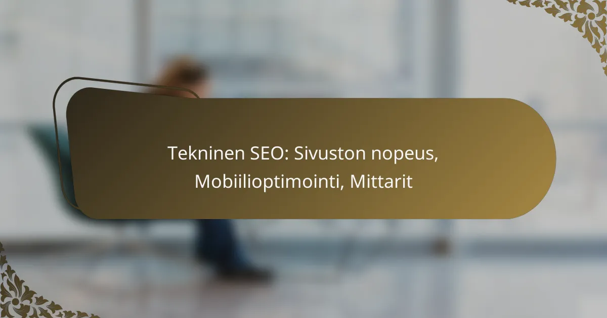 Tekninen SEO on olennainen osa verkkosivuston optimointia, ja siihen kuuluu muun muassa sivuston nopeus ja mobiilioptimointi. Nopeampi latausaika parantaa käyttäjäkokemusta ja hakutulossijoituksia, kun taas mobiiliystävällisyys