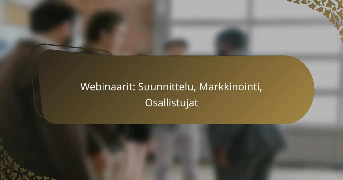 Webinaarien suunnittelu, markkinointi ja osallistujien sitouttaminen ovat keskeisiä tekijöitä onnistuneen tapahtuman toteuttamisessa. Huolellinen teeman valinta ja kohdeyleisön määrittäminen luovat perustan, kun taas tehokkaat markkinointistrategiat auttavat